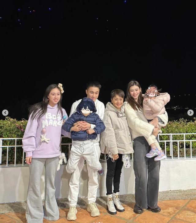 从左到右,全家福分别是妹妹何超欣、何猷君父子、四太梁安琪、奚梦瑶母女。