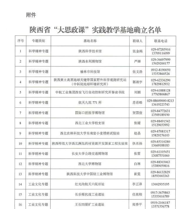 近日,陕西省委教育工作委员会与省委宣传部、省科技厅、省工业和信息化厅、省文物局联合公布。 " 陕西省“大思政课”实践教学基地 " 铜川博物馆名单获得陕西省批准 " 大思政课 " 实践教学基地(中华优秀传统文化专题)。