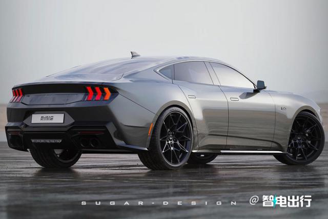 从发布的渲染图可以看出,福特野马的“四门版”车型头部配备了 Mach-E 同一款车型的大尺寸封闭格栅,两侧提供全新造型。 LED 大灯组。车身 C 柱子位置采用滑背式运动轿跑设计风格,两侧还配有隐藏式门把手。