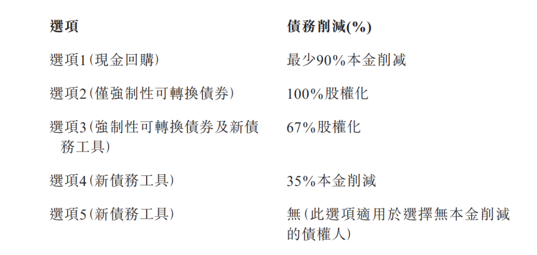 选项五,你说你不想要股份,也不想要资金打折,你得拿回所有的本金。不是不可能。碧桂园也给出了一个计划,期满日期增加,11.5年后。这些旧债券都换成了新债券,统一到11.5年后兑现。但是11.5年后,碧桂园能兑现吗?没有人能保证这一点。因为目前的计划只是一个妥协的计划。它的核心目的是拯救碧桂园自己,而不是拯救债权人。