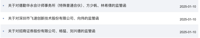 1月10日,深圳证券交易所发布三封关于深圳市快速创新技术有限公司(以下简称“快速创新”)IPO申请的监管函,深圳证券交易所书面警告发行人快速创新、保荐机构招商证券、审计公司德勤华永及相关人员。