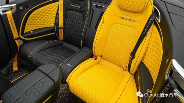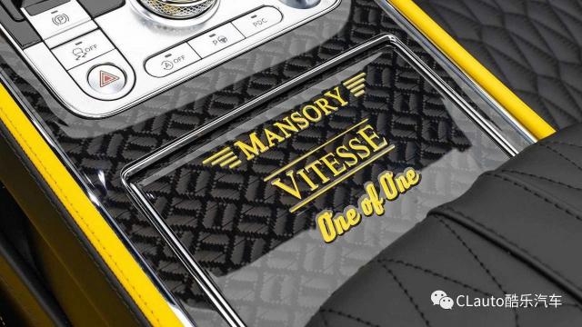 座椅的颜色也是黄色和黑色的交叉,整个内饰都有鲜明的色彩对比。中控台装饰 Mansory Vitesse 铭牌上写着“铭牌” One of One ",总而言之,一切都是黑黄对比的极限颜色。