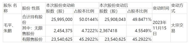 2023年根据公司公告 年 11 月 15 日,毛平减持公司股权合计 8.7 一万股,减持后,其直接持股比例由 31.75% 将为 31.58%。如果在前一个交易日收盘价 16.74 元 / 股票计算,这次毛平套现 145.57 万元。