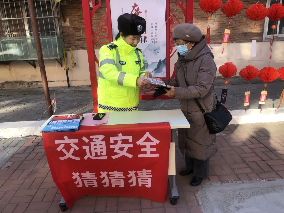 活动当天,交警很早就到场精心布置摊位。一排排红灯笼下不仅有“福”,还有交通安全主题的谜。去年看起来很有味道,猜起来很有趣。居民张阿姨犹豫不决,已经有人抢先回答:“这个问题我会,是闯红灯!这神秘的面孔出得很好,闯红灯就像奋不顾身,弄不好就有来无回,我们大家伙平时出门不要犯这样的错误!”张大爷的话让大家哈哈大笑,也激发了大家参与游戏的热情。