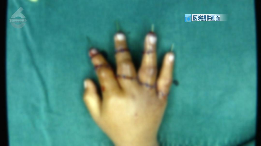最终,医疗队将断成7段手指全部接回,目前女孩断指伤口恢复良好。