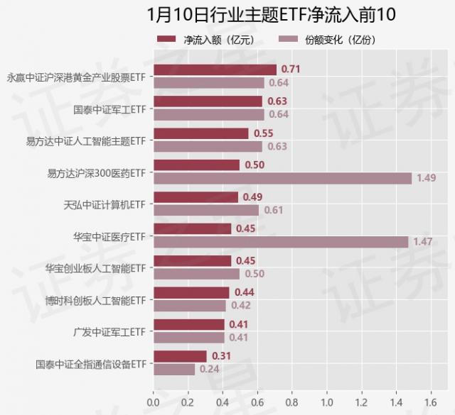 证券之星消息,1 月 10 日行业主题 ETF 总资金净流出基金 29.53 亿元,近 5 一个交易日累计净流出 58.28 亿元,5 在一个交易日内,出现了日合计资金净流出。 3 天(ETF 计算资金流入的方法:(当日 ETF 现场流通份额 - 前一交易日 ETF 现场流通份额)* 当天 ETF 均价,数字仅供参考)。