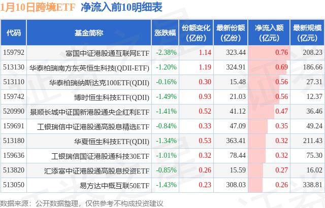 一月十日,跨境ETF净流入5.7亿元