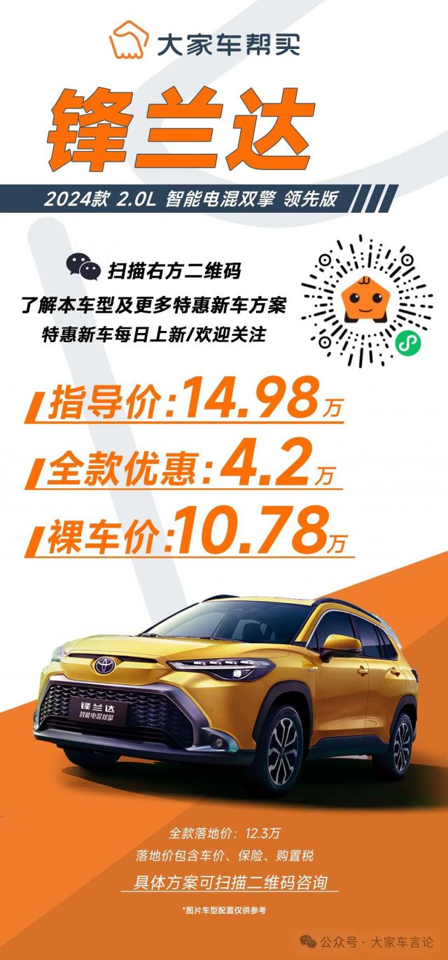 那个肯定是有的,今天就给大家带来丰田的入门级混动。 SUV,这一级别,锋兰达和卡罗拉锐放,可以说都是卡卡走量的热销车型,一起来看看: