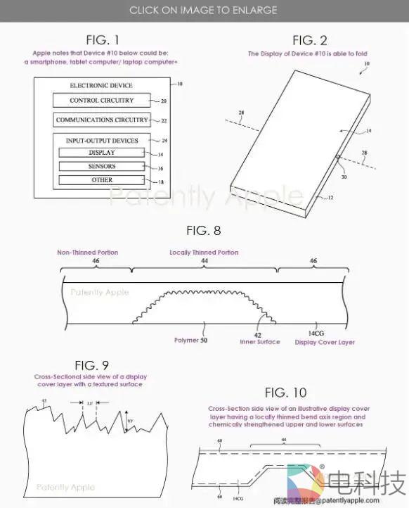 与此同时,苹果致力于解决折叠手机常见的褶皱问题,其专利显示屏幕表面通过在系统折叠部分的玻璃中切割和添加聚合物材料来保持光滑。然而,目前供应链技术很难完全实现这些先进的设计理念。