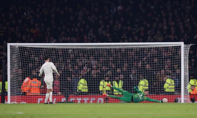 最终,双方只能进入点球大战,哈弗茨在第二场比赛中罚下的点球被巴因迪尔扑出,而曼联的所有球员都被罚下。 B 费、阿马德 · 迪亚洛,莱尼 · 约罗,利桑德罗 · 马丁内斯和齐尔克泽无虚发。