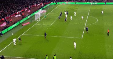 巴因迪尔再次冲锋在前,扑出德克兰。 · 头球在赖斯小禁区进攻。「别忘了写在你的报告里,我们只有 10 他们有个人 12 个人!」曼联球迷讽刺马德利。