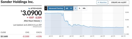 Sonder股价在2022年6月与其高峰期相比,已经蒸发了80%以上。