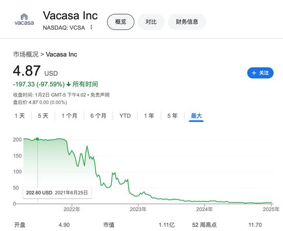 美国短租管理独角兽公司Vacasa曾经风光无限,上市三年后市值下降了97%。