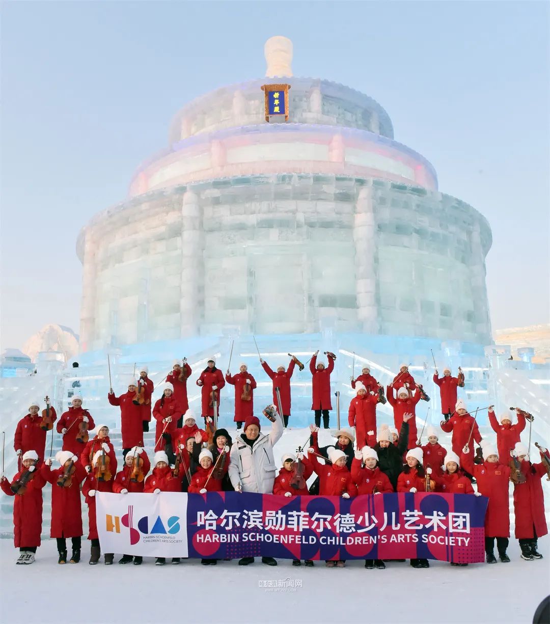 1月12日下午,一场小提琴闪光秀在哈尔滨冰雪新天地公园上演。勋菲尔德国际音乐协会主席、哈尔滨勋菲尔德儿童艺术团创意总监薛苏里与哈尔滨勋菲尔德儿童艺术团的孩子们一起上演了一场小提琴演奏闪光秀,迎接2025年哈尔滨第九届亚冬会。这是哈尔滨冰雪新天地公园第一次举办小提琴闪光秀。