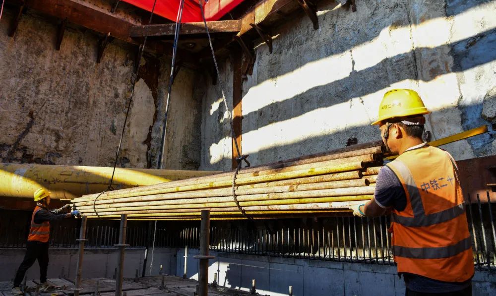 一月十一日,工人们在三亚河口通道工程工地进行施工。新华社记者 杨冠宇 摄