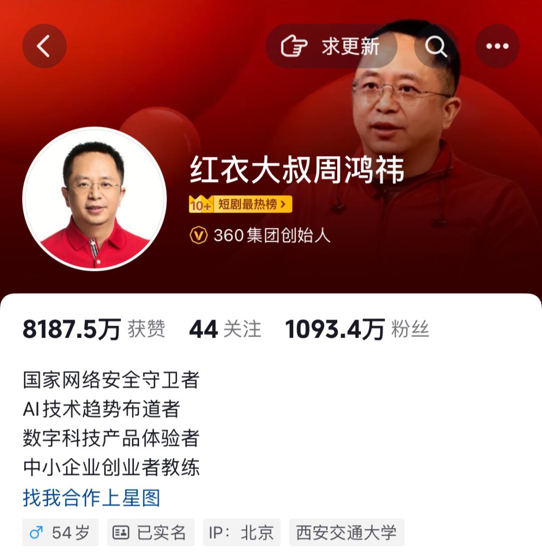 值得注意的是,周鸿祎宣布上传送车活动视频后,粉丝数量迅速增加。据统计,截至视频上传后不久,其粉丝数量已突破1000万大关,持续上升至1093万(截至发稿前),半天内粉丝数量超过100万。这种增长速度无疑证明了周鸿祎在互联网上的影响力和影响力。