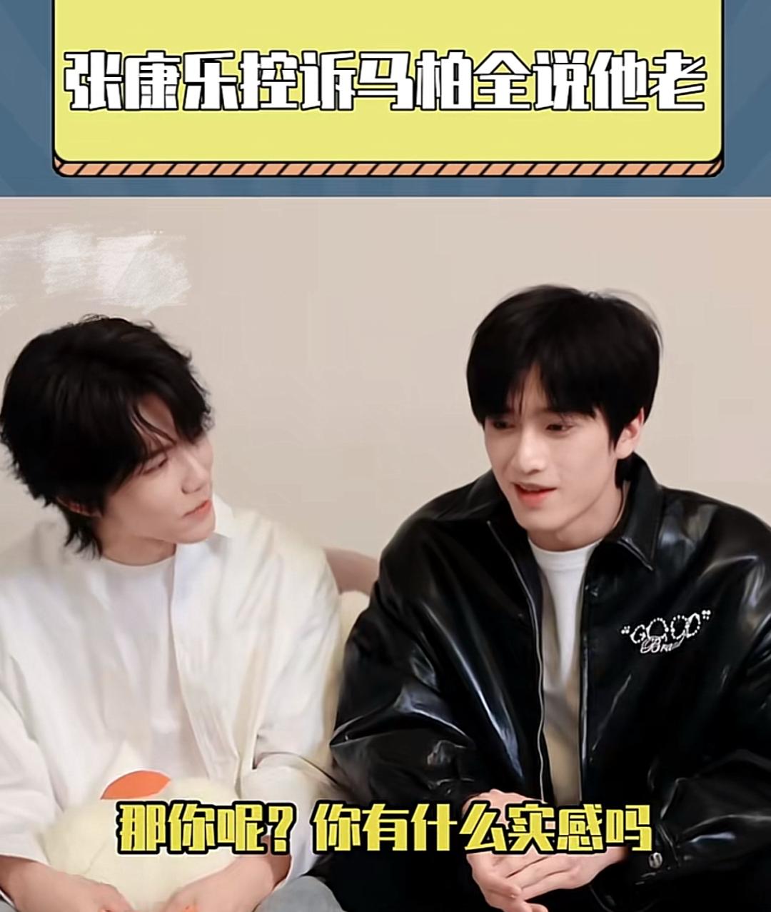 采访中,被问及五岁的年龄差异。马伯全非常毒舌地说:“我对23岁没有真实感觉,因为我从来没有到过这个年龄。”张康乐也不含糊:“我没有真实感受。反正我18岁的时候没有欠他那么多。”幸运的是,这对CP并没有提高到“净化”的水平,否则马伯全粉丝可能会喊张康乐“老太太”。