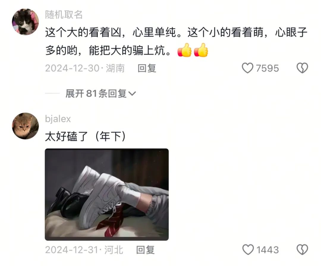 在追剧之前,硬糖君看到大家都在大力讨论,感觉好疯狂。追剧之后,自己也好看加入讨论。爱的不确定性,就像2024年流行起来的side一样,重新向核心受众释放了主导权。让他们猜测,讨论,找证据辩论,把流量带起来。年下党说弟弟有凝血障碍做不到零,只能憋屈哥哥。年上党说,哥哥把弟弟钓死了,谁主动谁被动不太明显。