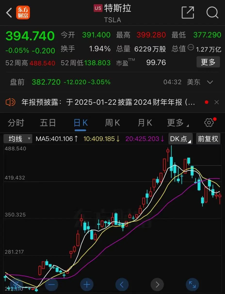 消息传出后,特斯拉盘前股价大幅波动,截至北京时间17:30,特斯拉盘前下跌3.09%。