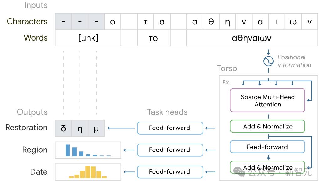 在2022年,他们再次使用流行的Transformer来训练一个名为Ithaca的模型,并在此前的基础上增加了预测未知文本日期和发源地点的能力。