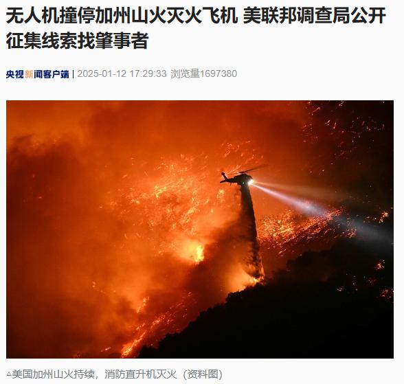 无人驾驶飞机撞停加州山火灭火飞机,美联邦调查局公开征集线索寻找肇事者