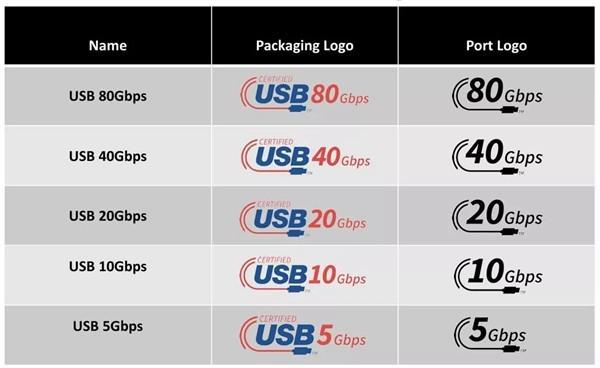例如,USB4将显示设备的传输速率和充电能力, 它可能会被标记为“ USB 80Gbps ",这表明它的传输速率可以达到每秒。 80 Gbps,信息一目了然。同理,其他较低级别的设备也会标注" USB 40Gbps ",而较旧的 USB 这种标识方法也将用于规格,例如“ USB 20Gbps "将用于 USB 3.2 Gen 2x2 设备," USB 10Gbps "将用于 USB 3.2 Gen 2 设备。