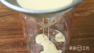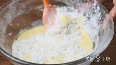 2. 低筋粉过筛,加入蛋奶液,搅拌成面糊。