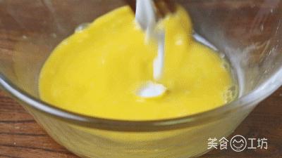1. 鸡蛋加糖打散,加入牛奶搅拌均匀。