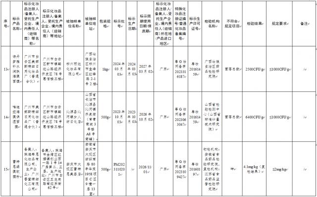 在 2024 2008年,在国家化妆品抽样检验工作中,经山西省检验检验中心等单位检验,商品标签名称为小颗粒藻类保湿面膜等。 30 批次化妆品不符合要求(见附件)。