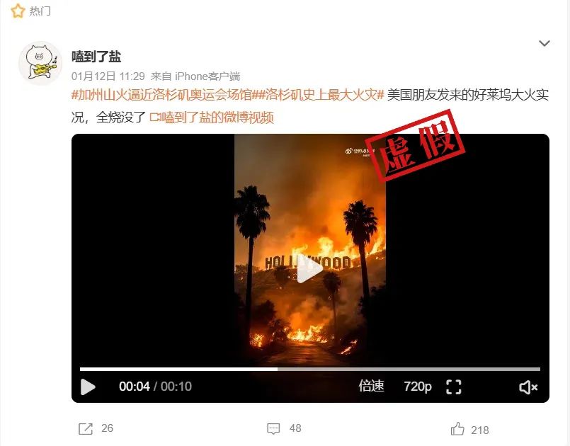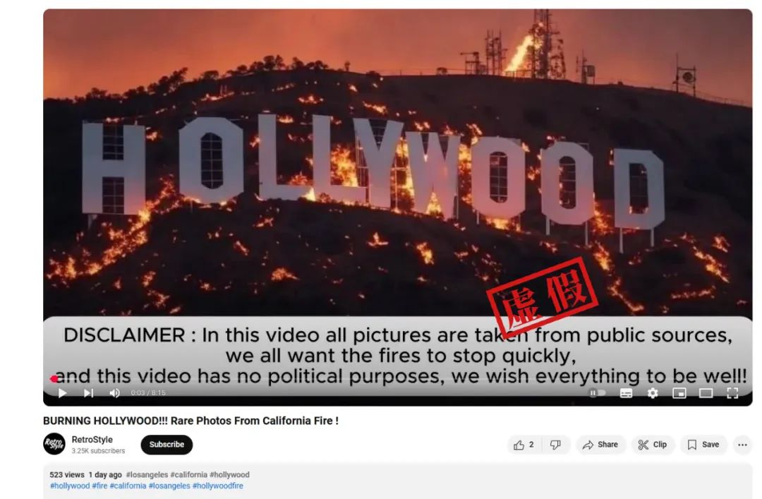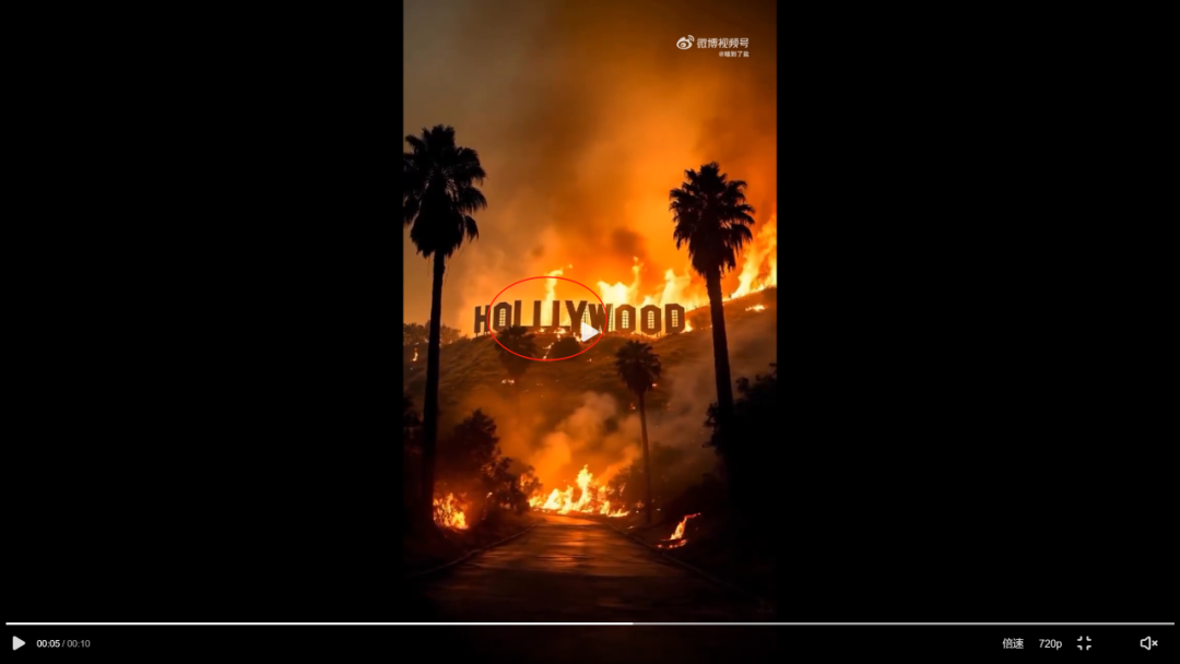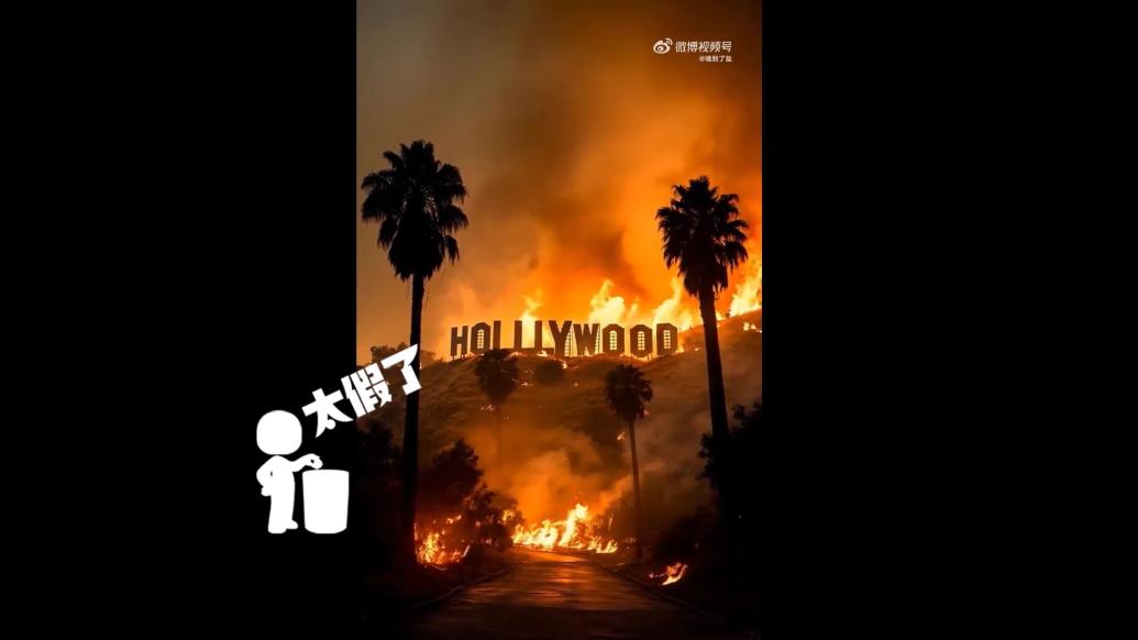 - 网络爆炸“好莱坞巨型标志被加州山火吞没”的说法是不真实的。AI制作了网络视频。