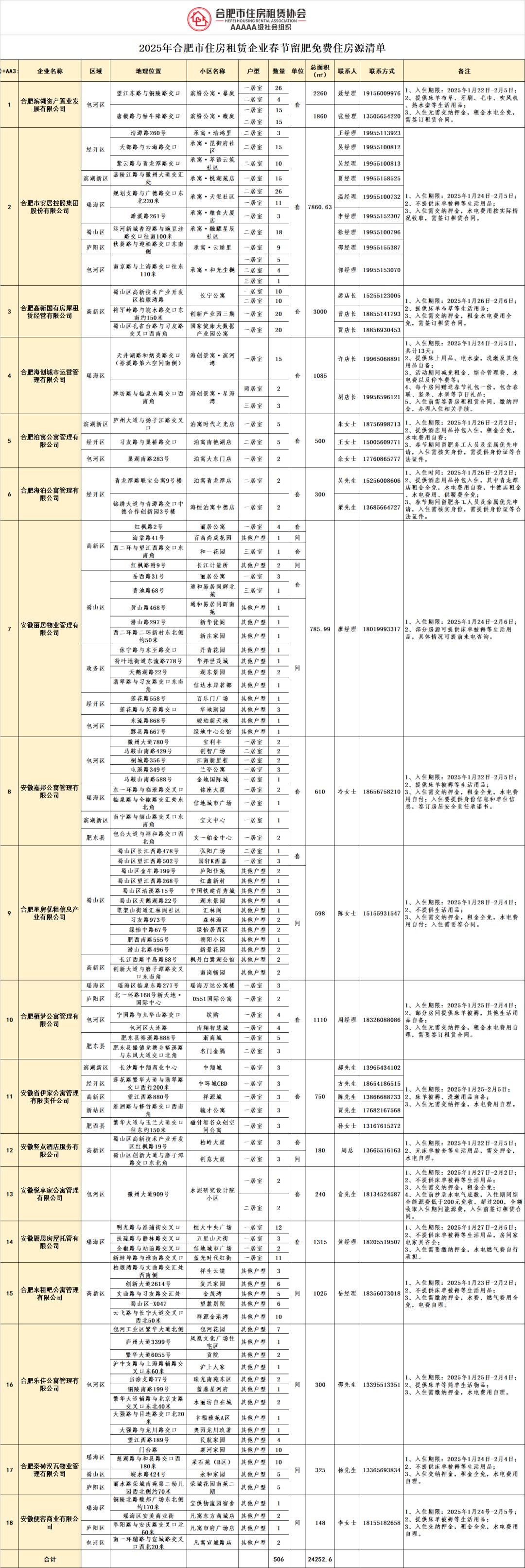 截至1月13日中午12时,已有18家房屋租赁企业积极报名参加本次活动,共提供覆盖合肥各县区的506套/间公益房,总面积超过24000平方米。