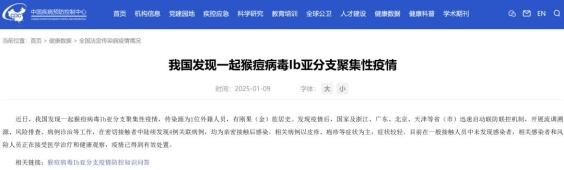 Ib亚支系猴痘病毒聚集性疫情传染源为1名外籍人员。