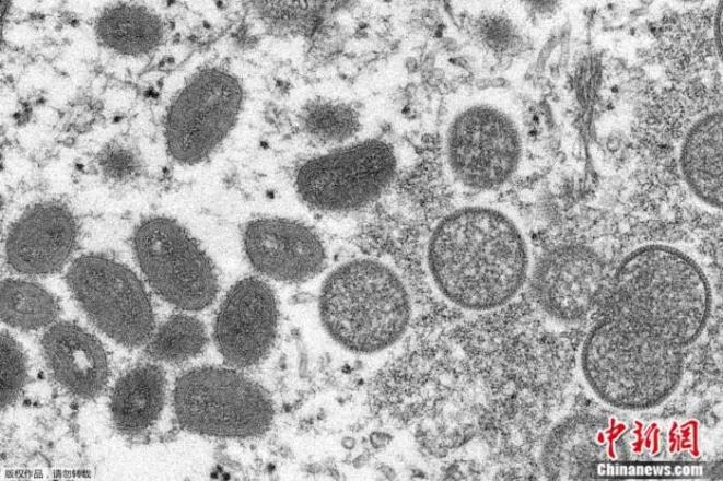 数据图:美国疾病控制与预防中心提供的电子显微镜图像显示,猴痘病毒(左)和未成熟病毒粒子(右)完善。