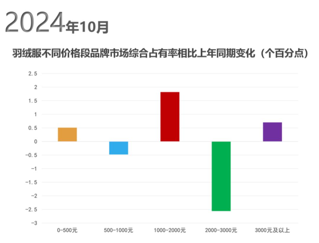 根据中华全国商业信息中心的数据,我国羽绒服平均单价在2015年后的五年内上涨了近52%。其中,与去年同期相比,终端销售平均价格在1000-2000元之间的品牌市场综合份额增长最为明显,增长了1.82。%。