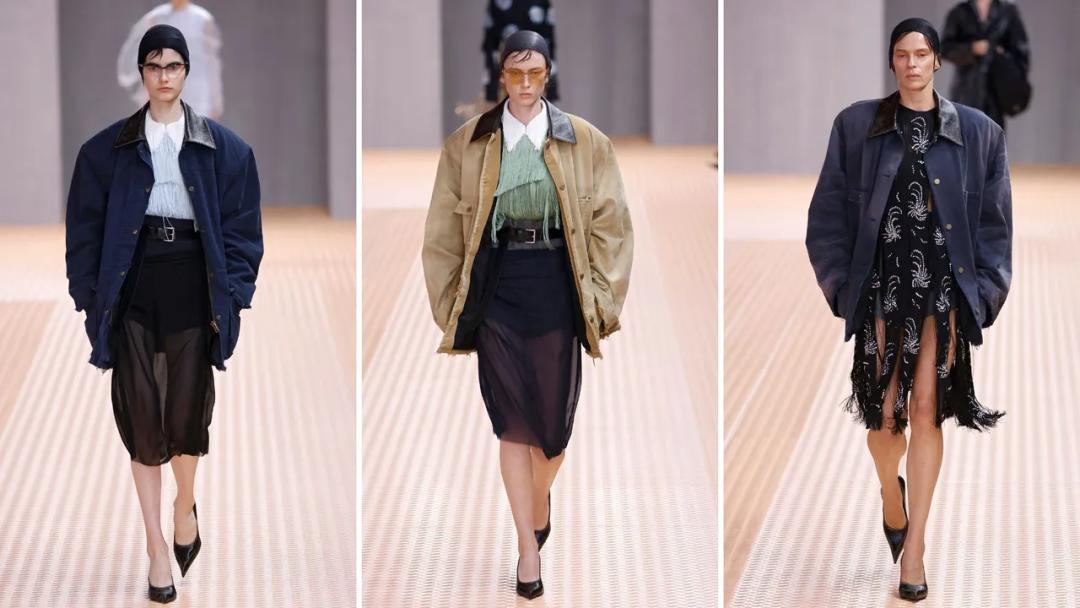 直到 Miuccia Prada 在2024系列中,超大型粮仓外套和轻便的流苏裙安装在一起,搬到了t台上。人们注意到这是一件非常普通的东西。「劳保夹克」可以延伸出无限可能的全能组合公式。