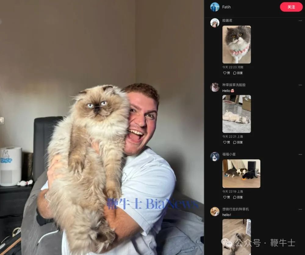 一些中国小红书客户也和美国 TikTok 顾客交换了他们的宠物照片,后者发布了与他们毛茸茸的朋友有关的照片。