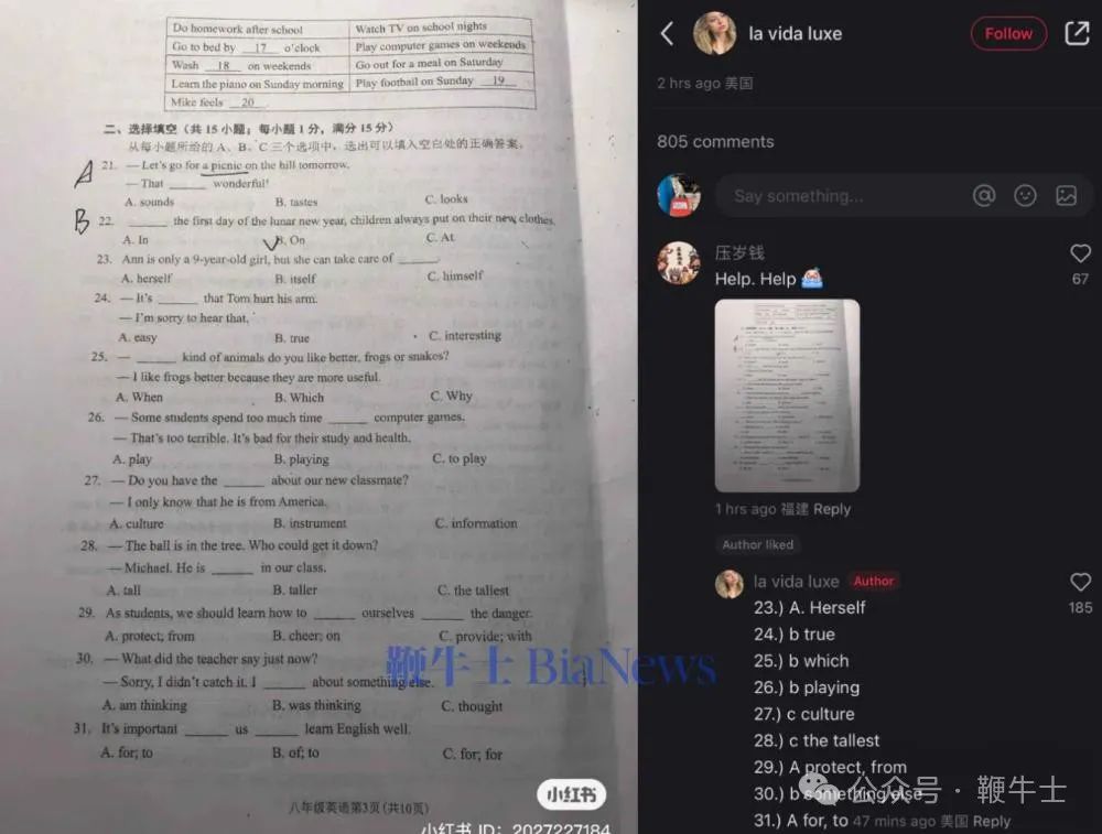一位小红书客户甚至借此机会邀请了一位美国TikTok用户来帮助他完成英语作业。