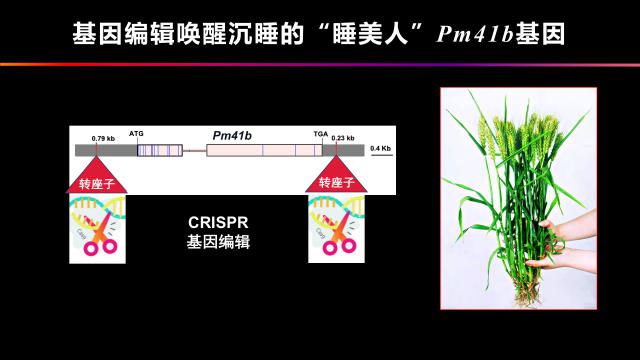 现在我们有了一个新的生物技术工具——基因编辑,所以我们用剪刀把它前面的座位换掉,后面的座位直接剪掉。这个基因不会起来工作,所以我们在麦子里叫一个叫“睡美人”的抗白粉基因,然后直接叫一个感性疾病和高产的基因去工作,那么它就会高产抗病。因此,这是第一个与大家分享的故事,也是我们发现的故事之一。