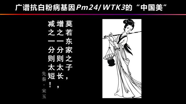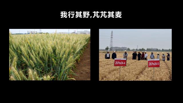 现在中国黄淮平原小麦主产区最缺的是什么,抗白粉基因,所以我们把它转移到高产品类型。你可以看到我们做的产量更高,植株更高更矮,整个抗白血病都是免疫的。我们想到了《诗经》中的一首诗,当我们到达麦田时,我们想到了“我们做我们想做的事,我们做我们想做的事”,这特别有意境。