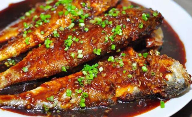 “炖黄鱼”,每人一餐吃两三条很过瘾。黄鱼也可以红烧、干炸、糖醋。黄鱼是蒜瓣肉,刺不多,鲜嫩可口,大人小孩都喜欢吃。