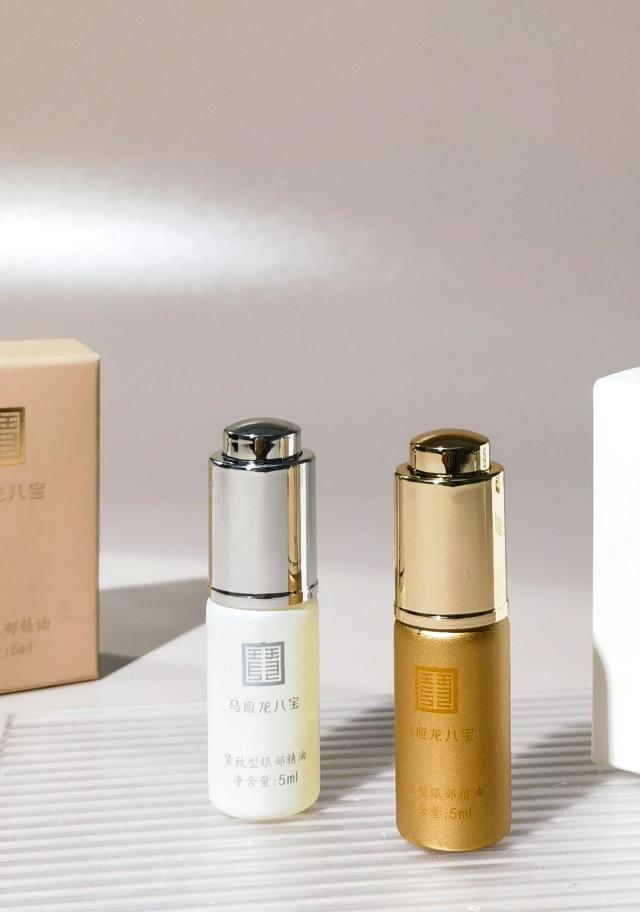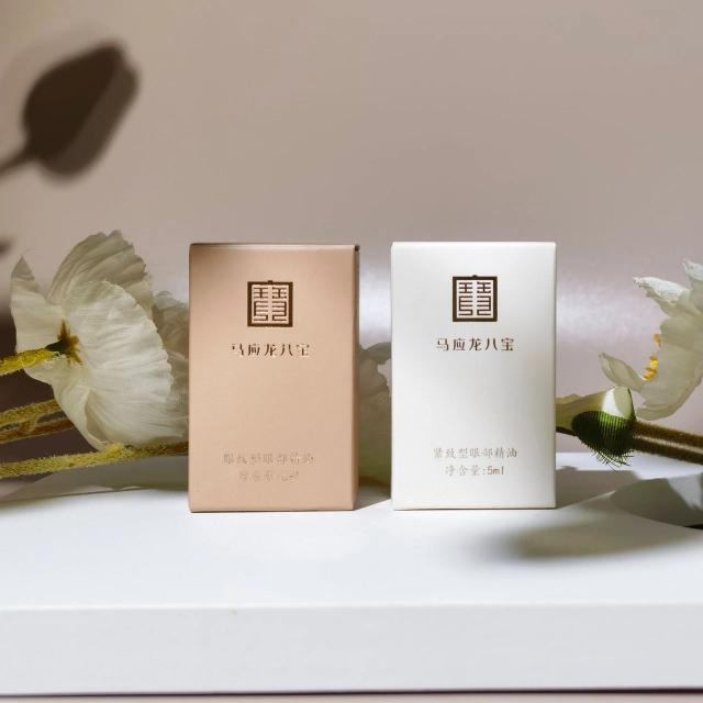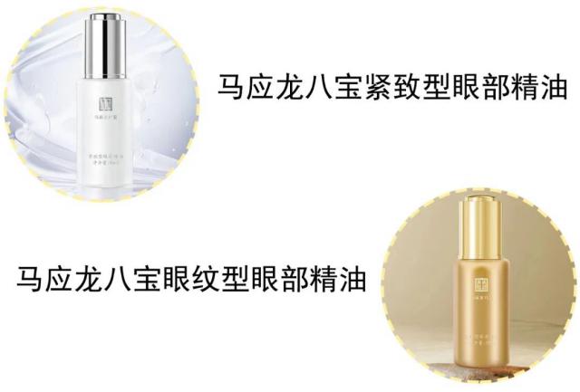 一种是马应龙八宝紧实型眼部精油,专为应对眼部暗沉而生。