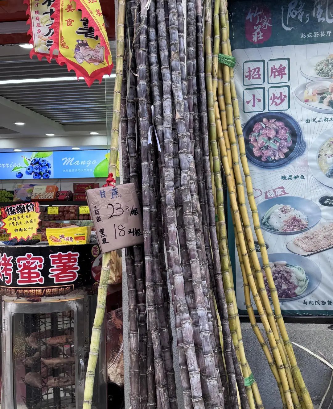 记者在水果店看到,绿皮甘蔗的价格是23元/根,黑皮甘蔗的价格是18元/根。店员告诉记者:“黑皮甘蔗吃起来更甜,绿皮甘蔗更清爽。”一位购买的顾客说,现在是吃甘蔗的时候了。这个季节的水果比较新鲜,甘蔗意味着越来越高。过年的时候买一些甘蔗,意思很好。