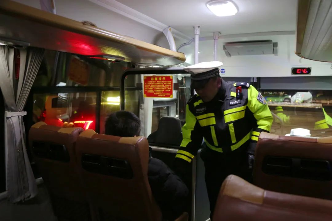 和龙交警对1月14日春运高峰首班车进行了全面细致的安全检查。通过检查轮胎图案、保险带、灭火器、安全锤等设施,确保车辆状况良好,避免“病车”上路。