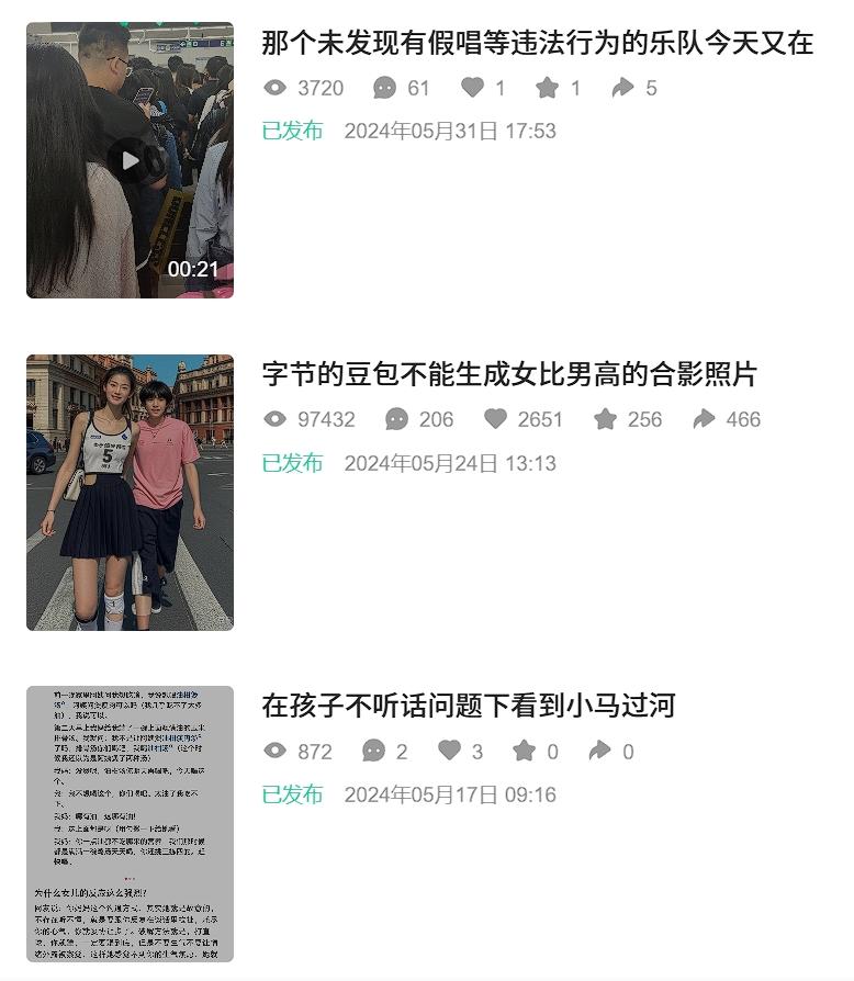 如今,没有编辑、风景混乱、抖动的视频可能会在抖音中发布,这可能不会被质疑,只能作为你朋友圈的备份。但是在小红书里,你顺手发布的内容可能会变成“公共领域的朋友圈”。