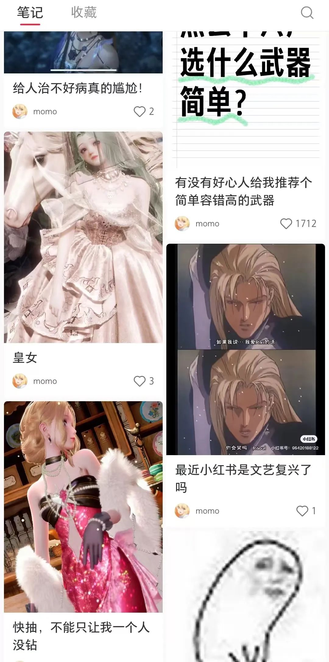然而,与关键词集成信息不同,小红书是算法集成。而且小红书的个人信息页面并没有总结出ta在评论区的互动。只有一个momo头像,你真的很难知道ta在哪里说话,所以有更多的交集。你不能让人们看你的信息页面来理解你有多少面孔。
