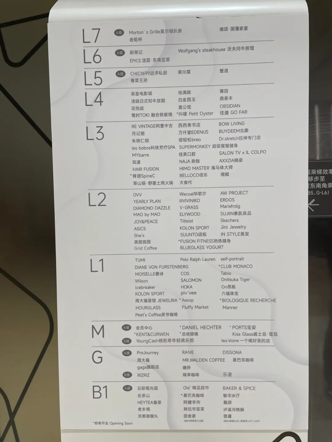 顺便说一下,商场还打开了楼层隔断(L1中厅),使中厅的位置看起来更加透明。