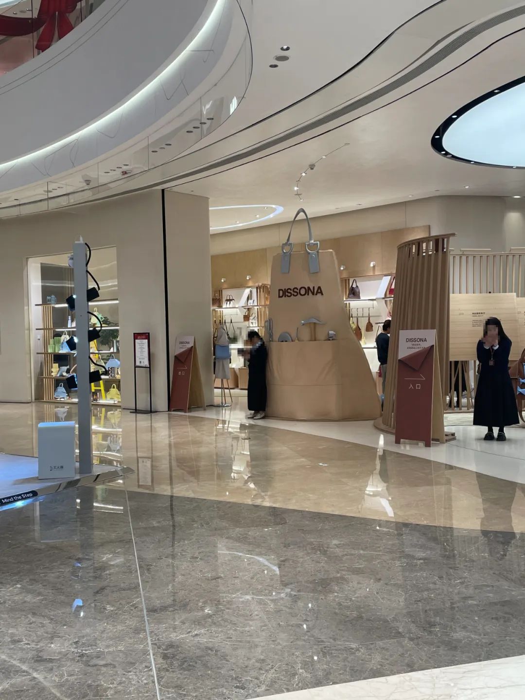 现在这个地区已经被一个中国原创精品皮具品牌DISSONA拿下,蔚来只在中厅有一家中岛店。