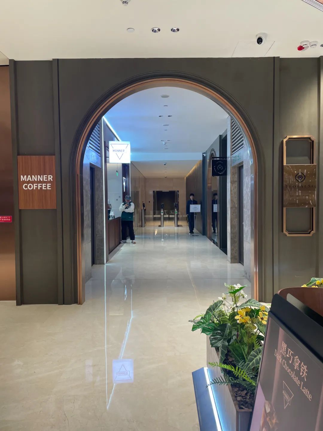 另外,连接办公区的通道,靠近直梯或自动扶梯的位置,几乎都有咖啡、茶等品牌。