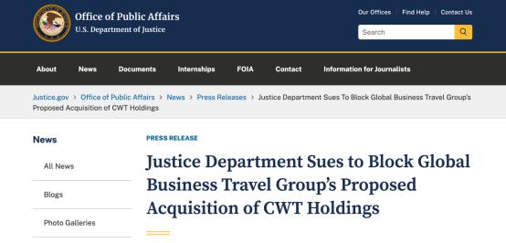 最近,美国司法部提到民事反垄断诉讼,试图阻止GBT以5.7亿美元收购其竞争对手CWT的交易。