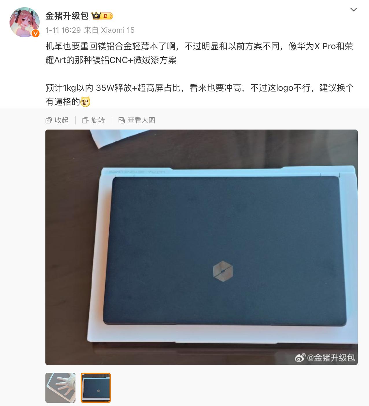 甚至在 2024 2008年突如其来的二线厂商机械革命,并不局限于性价比游戏本和轻薄本,而是将推出一款以超轻为主的高端笔记本产品。最近,知名 PC 微博上透露了博主@金猪升级包,机械革命也要推出一款机械革命 1kg 内部重量超轻笔记本,返回超轻笔记本队伍。